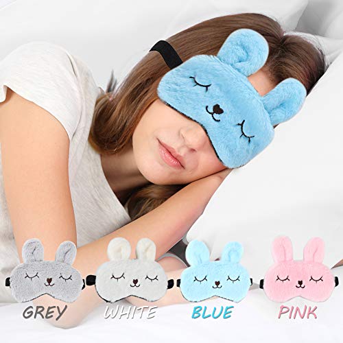 JDYW 4 Pezzi Mascherina per Dormire Animali Coniglio Carino Mascherina notte Maschera Sonno Occhi per Donna Bambina Ragazza