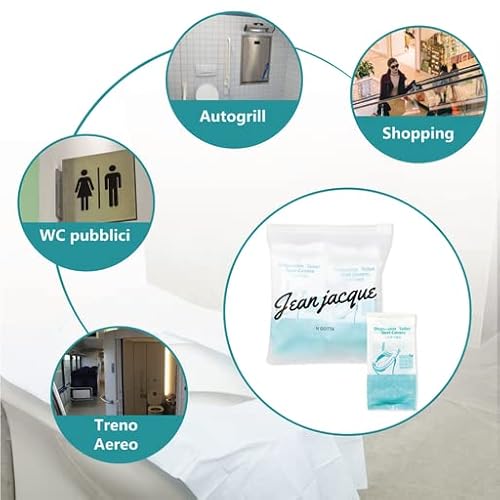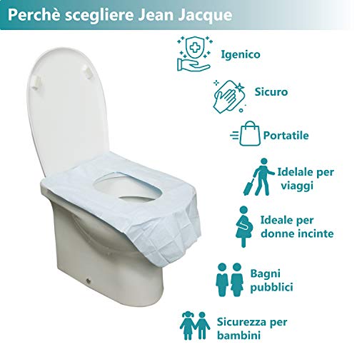 Jean jacque Copriwater Usa e Getta - 20 Copri Tazza WC Monouso Impermeabili con Adesivo in Buste Singole - Copriwc in Carta e Plastica PE Resistenti e Antiscivolo