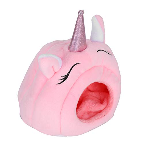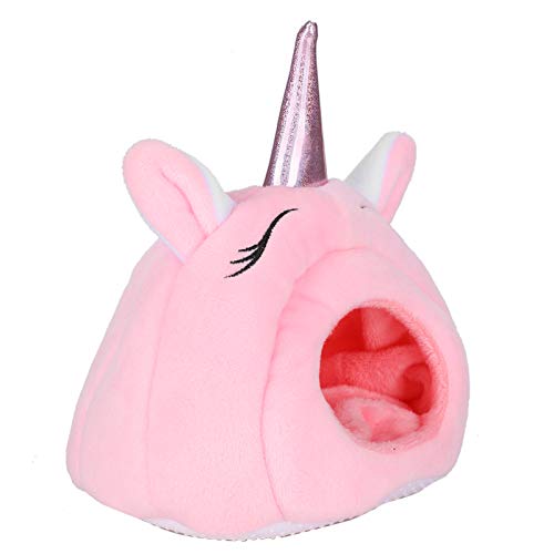 Jeanoko Piccolo Animale Domestico Inverno Dorme Gabbia Letto Criceto Casa Calda Rimovibile Animale Domestico Che Gioca Grotta Unicorni Forma Carina(Rosa)