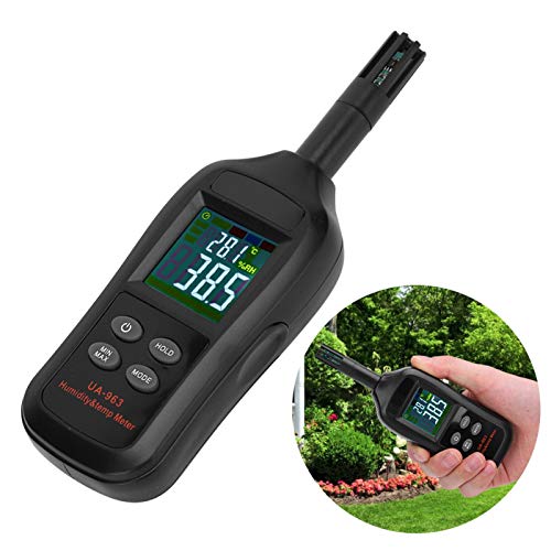 Jeanoko Termometro igrometro Portatile Misuratore di Temperatura di umidità LCD Misuratore di Temperatura e umidità Compatto per Laboratorio