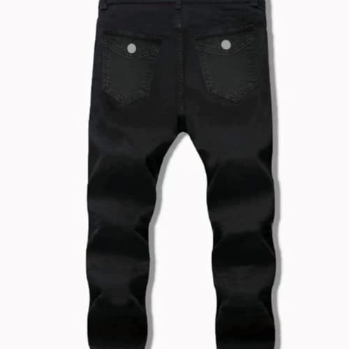 Jeans Cargo da Uomo Moda Multitasche Cuciture Lavato Distressed Streetwear Pantaloni Slim in Denim da Esterno L