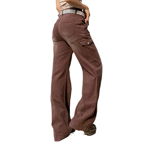 Jeans larghi da donna Y2k Casual a vita alta pantaloni in denim larghi pantaloni dritti vintage estetico E-Girl Streetwear (marrone, M), Marrone, M
