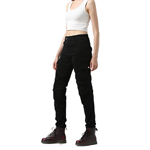 Jeans da Moto da Donna, Pantaloni da Motocross, Versione Aggiornata di Tappetino Protettivo Rimovibile, Pantaloni da Moto Anti-Caduta (Nero,41)