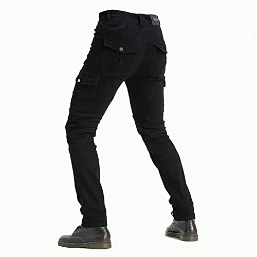 Jeans da moto da uomo realizzati in tessuto kevlar, pantaloni protettivi da moto, in denim traspirante, rinforzati, rimovibili e rinforzati, corazzati (nero, M)