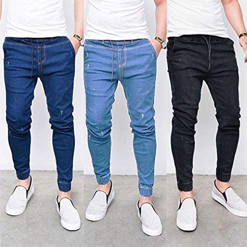 Jeans Jeans da Uomo Jeans Elasticizzati con Lacci Jeans di Stagione Jeans da Uomo Morbidi Floccati Pantaloni di Nuovo Arrivo per Uomo L Azzu