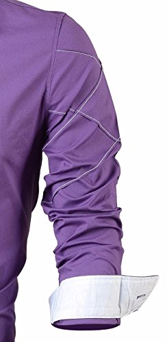 Jeansian 2028 Camicia da uomo alla moda, manica lunga, slim fit, casual Viola Medium