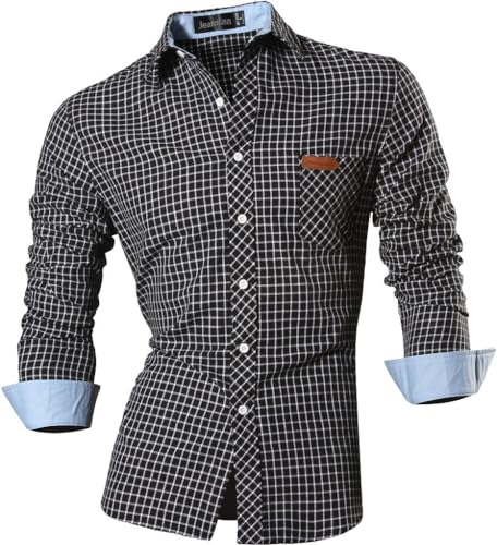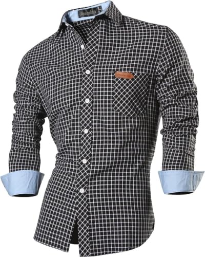 Jeansian Uomo Camicie Casual Classiche Manica Lunga Slim Fit Men Shirts 8615 Black XL