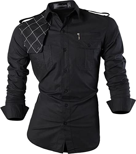 Jeansian Uomo Camicie Maniche Lunghe Moda Men Shirts Casuale Cime 8371 Black XXL