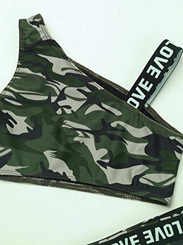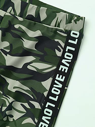 JEATHA Completo Sportivo Ragazze Jogging Corsa Fitness Allenamento Abiti Mimetici Crop Top da Danza Yoga + Ragazza Leggings Stretch Lunghi 3-16 Anni A Camouflage Verde 5-6 Anni