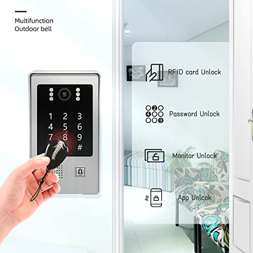 JeaTone IP 1080P Videocitofono Wifi 4 Fili,7 Pollici IP monitor,Telecamera Citofoni Esterna Cablata Visione Notturna,Unlock tramite APP/Carta RFID/Password,connessione wifi Tuya Smart APP