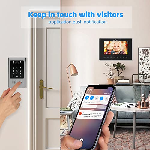 【Videocitofono Wi-Fi con password / scheda RFID/app del telefono cellulare/funzione di sblocco del monitor】 Quando i visitatori premono il campanello, puoi vedere parlare con tutti davanti alla tua porta da qualsiasi luogo sul monitor LCD con touch screen da 7 pollici o il tuo smartphone prima aprire la porta. Migliora la sicurezza e il comfort della tua casa e non perderai nessuna visita.