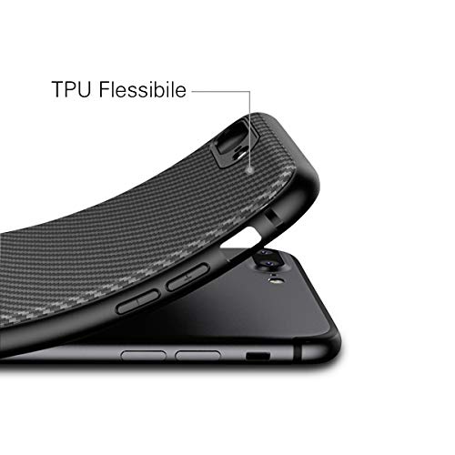 J Jecent Cover iPhone 7 Plus, Cover iPhone 8 Plus, [Look in Fibra di Carbonio] Custodia Protezione in Morbida Silicone TPU [Anticaduta, Antiscivolo, AntiGraffio, Antiurto] (5.5 Pollici)- Nero