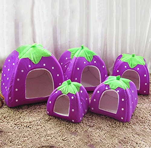 JEELINBORE Cuccia a Forma di Fragola coccolosa per Piccolo Animale Domestico Cani Gatti Cuscino Giaciglio Caldo Pieghevole Lettini (Viola, 2XL: 48 * 48 * 48cm)