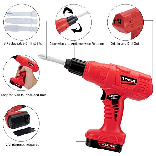 Jeesblsy Attrezzi da Lavoro Giocattolo Bambini Costruzioni Cassetta degli Attrezzi con Trapano Gioco D'imitazione Giocattoli Finti Educativo Compleanno Vacanza Regalo per Ragazzo Ragazza