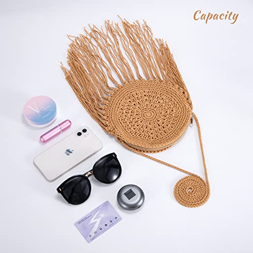 Jeesblsy Borsa a Tracolla, Donne Borse a Spalla con Nappe, Sacchetto di Paglia, Tondo Piccolo Fatta a Mano Boemia Borse da Spiaggia Estiva Crossbody per Viaggio Vacanze Appuntamento (Marrone)