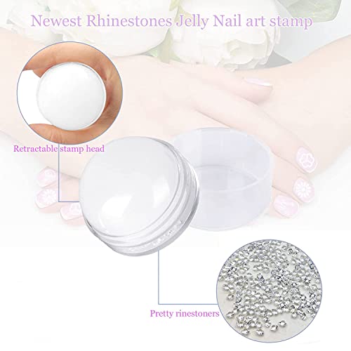 JEEWHEET 2pcs Jelly Nail Art Stamper per Unghie con 2Raschietti, Raschietto Strutturato può Essere Trasferito, Aurora Bianca Stamper per Unghie, Riduci il Modello Piatto di Immagine Manicure Francese