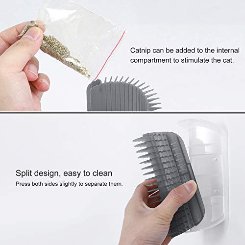 JEEZAO 2 Pezzi Nuovo Aggiornamento Angolo Massaggiatore per Gatto, Parete Spazzola di Toelettatura con Palline di Erba, Denti a Pettine Estesi (Grigio)