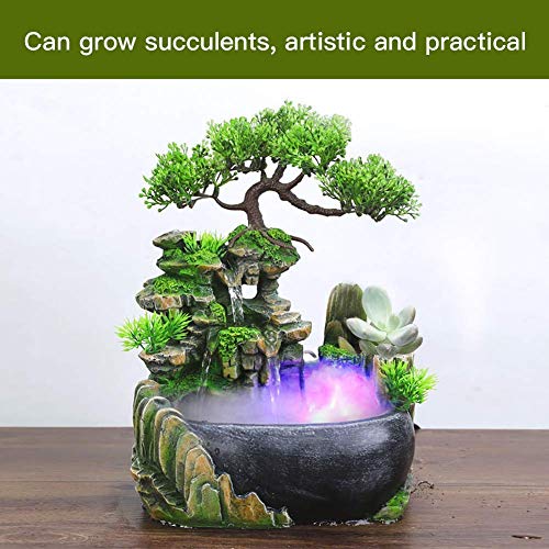 Jeffergarden - Fontana per uso interno ed esterno, a cascata, per ufficio, tavolo, fontana decorativa con acqua, per meditazione (1 pezzo senza LED + 1 pezzo con LED)