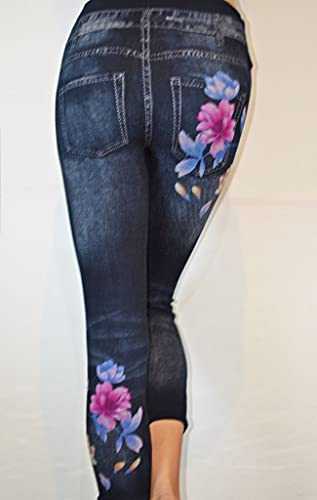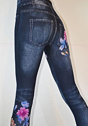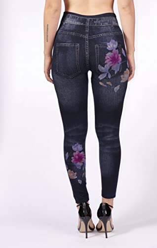 Jeggings Ultra Elastici Donna con Motivi Floreali Colore Nero Pantaloni Attillati Massima Elasticizzati Idea Regalo comodità Relax e Stile Jeggins Donna Skinny (46-48 L IT Donna)