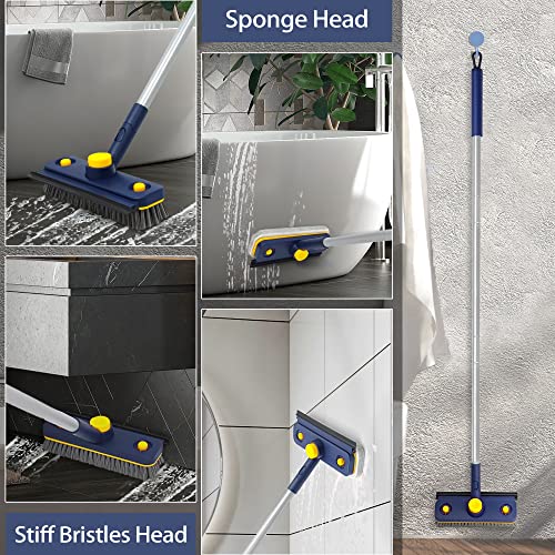 JEHONN Spazzola per Pulizia della Vasca e Delle Piastrelle, 3 in 1 Doccia con Manico Lungo, Spazzola per Pulizia a Setole Rigide Staccabili e Testina in Spugna per Bagno, Vasca da Bagno