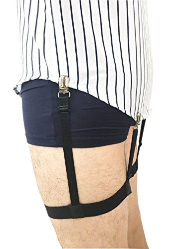Jelinda - Giarrettiere da camicia da uomo, fermacamicia, reggi-camicia da posizionare sulla coscia, regolabile, in Nylon nero