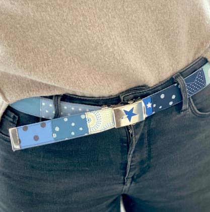 Jelly Roll Sea-Breeze (blu), un rotolo di Jelly include 20 strisce (100% cotone) da 2,5 pollici (circa 6,5 cm) di larghezza e 135 cm di lunghezza, 1 m di filo dentato, una fibbia per cintura con terminale.