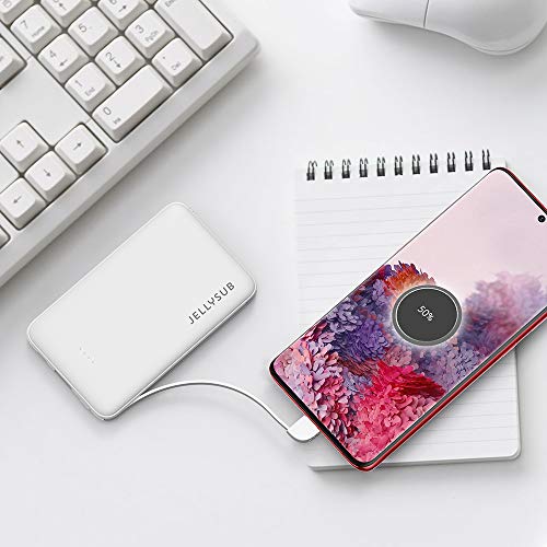 JELLYSUB Mini Power Bank con Cavo Integrato 5000mah, Caricabatterie Portatile, Ultra Compatto Batteria Portatile Sottile per iPhone, Samsung