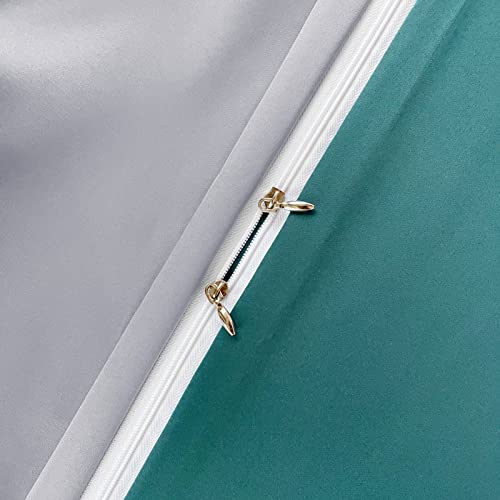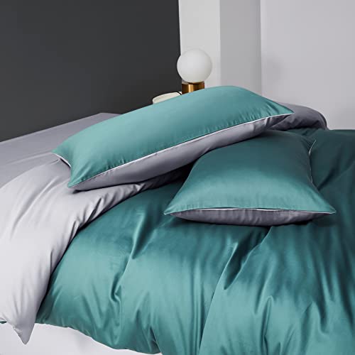 Jemiipee Set Copripiumino Raso Reversibile Letto Singolo Tinta Unita, 1 x Copripiumino 135x200 cm e 1 x Federa 80x80 cm Completo Sacco Parure Letto Biancheria da Letto in Satin - Grigio Verde