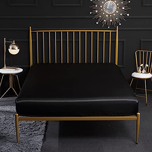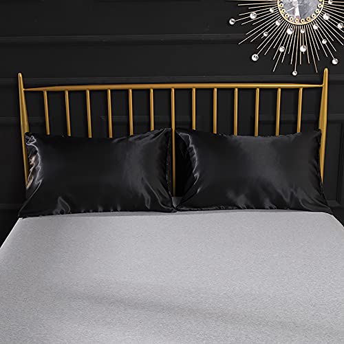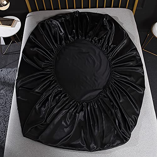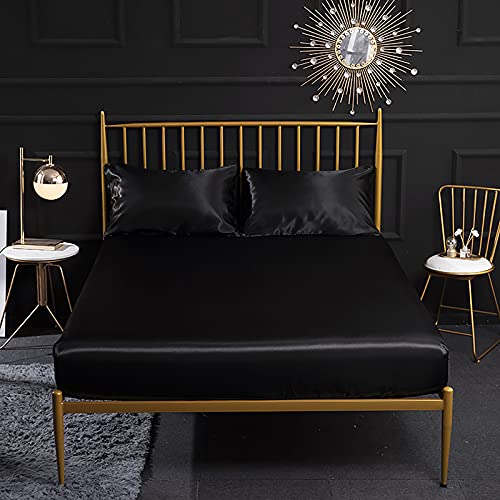 Jemiipee 4 Pezzi Completo Lenzuolo Letto Matrimoniale, 1 x Lenzuola Sotto con Angoli Tinta Unita 180x200 cm con 1 x Lenzuolo Piatto e 2 x Federe, Biancheria da Letto in Raso, Nero