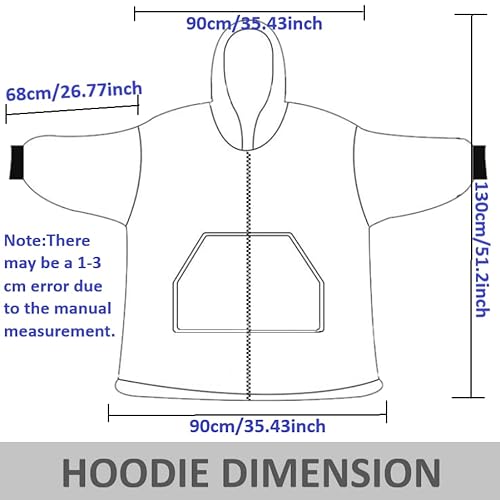 Facilità di manutenzione e taglia unica. Questa Felpa con cappuccio è facile da pulire e curare. Lavare delicatamente in lavatrice in acqua fredda, asciugare a fuoco basso. Non si deformerà o sbiadirà dopo il lavaggio, liberando le mani senza costosi costi di lavaggio.E la dimensione di questa coperta con cappuccio oversize allentato è adatta alla maggior parte degli uomini e delle donne, taglia unica.