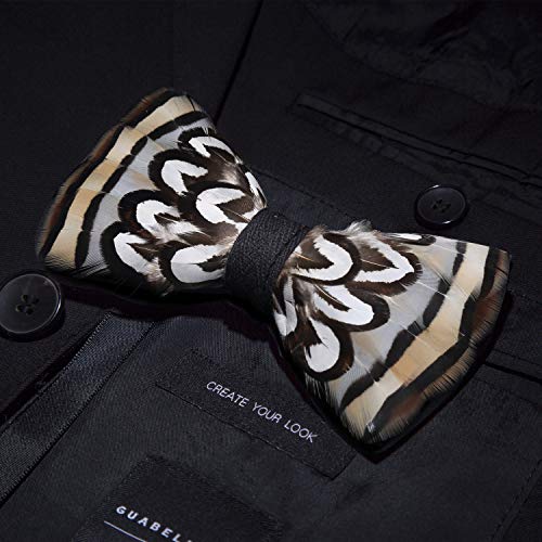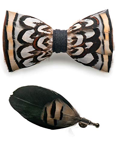 JEMYGINS Strisce bianche/nere Piuma Papillon Fatto a Mano e Spilla Set con Pacco Regalo da Uomo