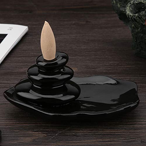 Jenngaoo Bruciatori di Incenso, Incensiere in Ceramica Fumo Cascata Riflusso Bruciatori di Incenso con Riflusso in Smalto per Nero - Incluso 10 Coni di Incenso