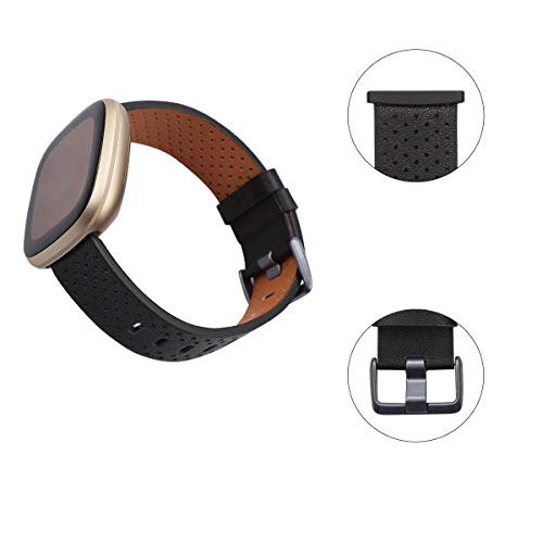 Jennyfly Versa 3 Cinturino in pelle, da donna, uomo, traspirante, cinturino di ricambio con fibbia in metallo regolabile da 14 a 20,6 cm, compatibile con Fitbit Sense/Versa 3, colore: nero