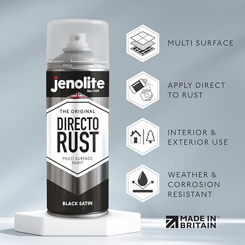 JENOLITE Directorust Vernice Satinata | NERO | Vernice spray multisuperficie | Per l'uso su aperture in legno, metallo, plaspa, ceramiche e arrugginite | 3 x 400 ml (RAL 9005)