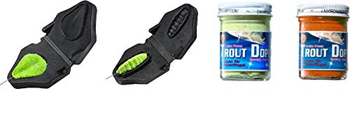Jenzi - Set cibo per trota a forma di goccia e di verme, 2 impasti (bianco e arancione scintillante), con adesivo Petri Heil incluso -