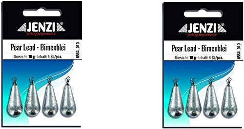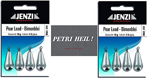 Jenzi Set: 2 confezioni di piombo pero, 10 grammi, 2 x 4 pezzi, con girello/occhiello, + adesivo Petri Heil!