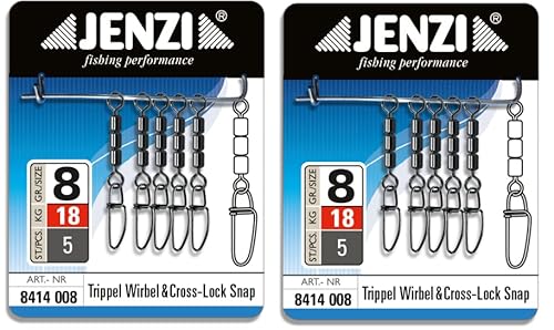 Jenzi Set di 2 confezioni (totale 10 pezzi) di girelle ad alta velocità con moschettone Fastlock, in nichel nero, misura 8, 18 kg + adesivo Petri Heil!