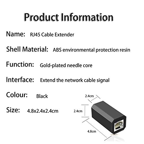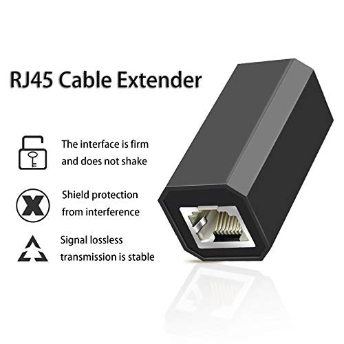 JeoPoom Adattatore di Rete RJ45, Adattatore per Reti, Femmina- Femmina Ethernet Cavo Ethernet Connettore LAN Extender Adattatore, Connettore LAN in Linea(Nero)