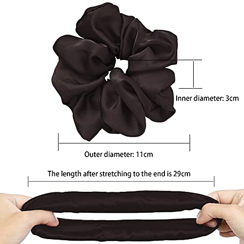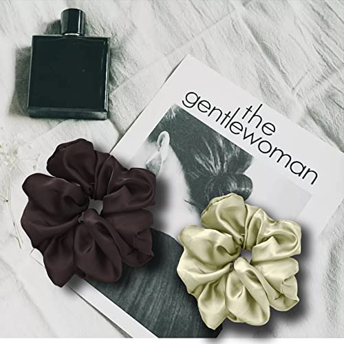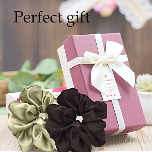JeoPoom Elastico Capelli Vera Seta 11cm, Scrunchies Fasce per Capelli Elastici Fascette per Capelli Porta coda di Cavallo per Accessori per Capelli per Donne e Ragazze(Marrone&Verde)