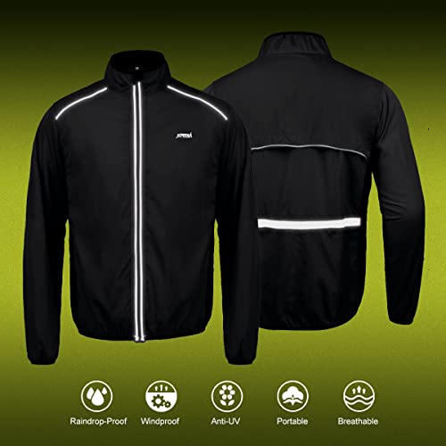 JEPOZRA Giacche Ciclismo Uomo Antivento Impermeabile Mtb Sportivo Abbigliamento Leggera Traspirante All'Aperto Ciclismo Giacca Asciugatura Rapida (L, Nero)