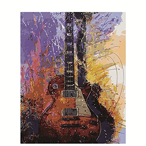 Jerdourb Dipingi con i Numeri, Dipingere con i Numeri per Adulti Bambini Principianti Fai-da-Te Dipingi su Tela Chitarra Musica (40x50cm Senza Telaio)