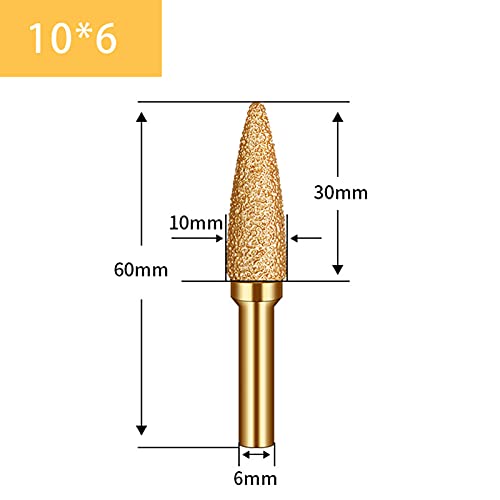 Jerilla Bit del Router Testa di Rettifica Diamantata - Gambo da 6mm Forma di Punta Metallo Fresa per Rifilatura Giada Strumenti di Intaglio per Ghisa/Acciaio Inossidabile/Piastrelle/Pietra (10mm)