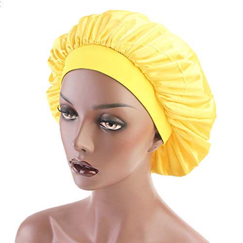 JERKKY Womens Faux Silk Bonnet Cap ampia fascia elastica Solid Night Sleep Hat avvolgere pieghettato giallo