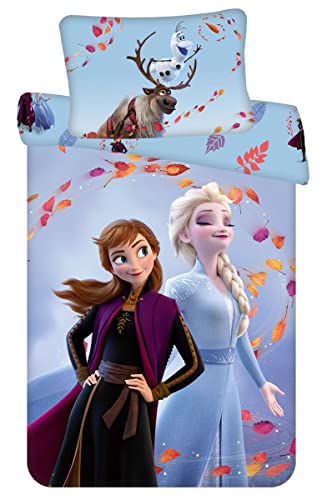 Jerry Fabrics Biancheria da Letto Frozen Anna,Elsa, Olaf per Bambine, Copripiumino 100 x 135 cm, Federa 40 x 60 cm,100% Cotone