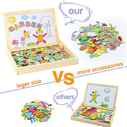 Jerryvon 160 Pezzi Puzzle Magnetico Legno, Lavagna Giochi Creativi Tavolo da Disegno in Legno Giocattoli con Animali, Piante, Lettere e Numeri per Bambini 3 4 5 Anni