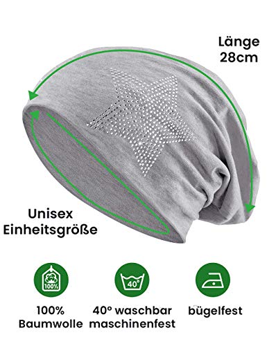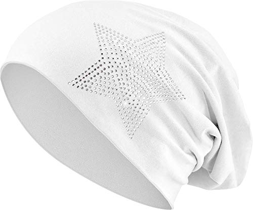Jersey Cotone Elastico Lungo Slouch Beanie Unisex Uomo Signore con Strass Pietre Cappello Heather in 35 Colori Diversi (2) (Bianco)