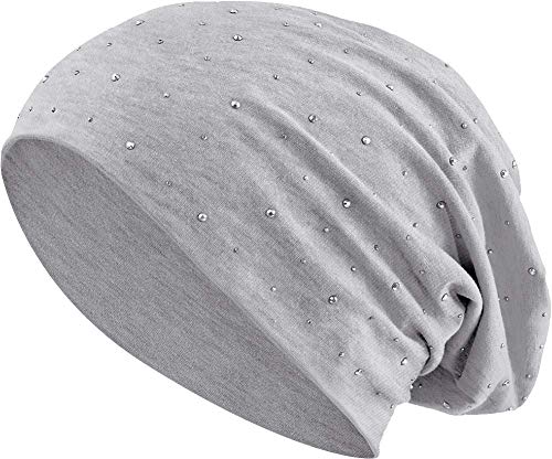 Jersey Cotone Elastico Lungo Slouch Beanie Unisex Uomo Signore con Strass Stelle Beanie Heather in 35 Colori Diversi (7) (Heather Light Grey)