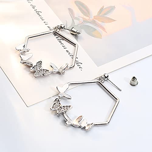 Jerywe Orecchini a Farfalla Placcati in Oro 18k per Donne Orecchini a Cerchio a Farfalla Grande Orecchini a Pendente Moda Boho Tono Argento 6 Paia