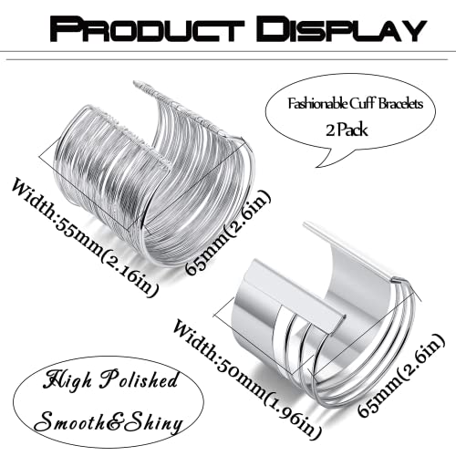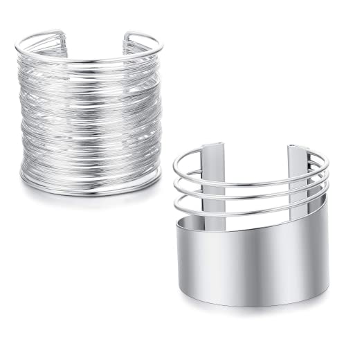 JeryWe 2 pezzi bracciale largo per le donne aperto bracciali filo largo regolabile bobina bracciali bracciale set oro/argento