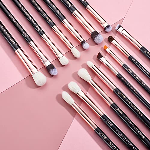 Jessup 15Pz Pennelli Trucco Professionale Set Occhi Trucco Pennello Ombretto Sfumature Manico in Legno Setole sintetiche-naturali Nero/Oro rosa T157